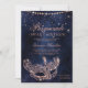 Un sweet sixteen moderne, chic et glamour avec une parties scintillant en or rose dessinée à la main masque masqué avec parties scintillant en or rose scintille sur un arrière - plan bleu marine foncé.