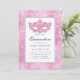 Invitation de Quinceanera avec masque masqué avec un arrière - plan à paillettes et diamant en cuir feuilleté inverse.