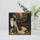 Belle invitation à la mascarade rouge, noir et or avec élégante coupe de champagne, masque en plumes et chaussures talon or. Vous pouvez facilement customiser cette élégante invitation de fête mascarade en noir et or pour votre événement en ajoutant simplement vos détails dans le style de police et de couleur, et le libellé de votre choix.