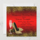 Belle invitation à la mascarade rouge, noir et or avec élégante coupe de champagne, masque en plumes et chaussures talon or. Vous pouvez facilement customiser cette élégante invitation de fête mascarade en noir et or pour votre événement en ajoutant simplement vos détails dans le style de police et de couleur, et le libellé de votre choix.