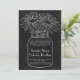 Ce Faire-part de mariage rustique et moderne fait partie d'une gamme de choix et de mélanges de Vraiment Unique. L'arrière - plan de l'invitation est un effet de tableau noir et gris charbon. Un dessin à grande ligne d'un pot de maçon avec deux fleurs marguerites englobe votre libellé faire-part de mariage.