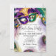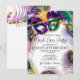 Célébrez avec style avec cette invitation élégante et moderne à l'aquarelle représentant un masque à plumes de paon coloré orné de perles dorées, violettes et festives. Parfait pour une soirée masquée de Mardi Gras, une fête d'anniversaire ou même des événements de fierté gay, ce design capture l'esprit vibrant du Mardi Gras avec son charme de masque de masquerade et son luxe. Définissez le ton pour un événement inoubliable avec cette invitation époustouflante qui est aussi festive que votre célébration.