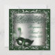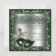 Cartes d'invitation de Masque de masquerade Argent & Vert Fête d'anniversaire. Articles assortis disponibles.