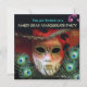 Masque de carnaval vénitien élégant, fantaisiste, éclatant et plumé en or rouge noir. Imaginaire artistique avec plumes de paon bleu vert bleu aqua turquoise coloré Design graphique numérique par Bulgan Lumini - Baldesign3d (c)
