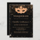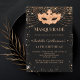Step into a night of mystery and glamour with this black and gold masquerade invitation. The design features a luxurious gold mask surrounded by sparkling lights and glittering details, creating the perfect ambiance for an unforgettable celebration.