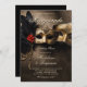 Un modèle d'invitation à la fête du 50e anniversaire, élégant et glamour, moody noir et or, avec un thème de mascarade, pour un couple, avec deux masques de mascarade vénitienne, une calligraphie élégante et un arrière - plan sombre texturé. Veuillez noter que l'or est un effet numérique, pas une véritable feuille d'or. Un beau choix pour une fête du cinquantième anniversaire à la Nouvelle-Orléans, le Bayou ou avec un thème Mardi Gras, Nola, carnaval, mascarade.