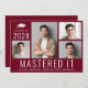 Maîtrise moderne burgundy invitation de fin d'études rouge avec 4 photos, "Mastered It" écrit en grandes lettres majuscules blanches et son année de classe, nom et l'école ou l'université en simple typographie blanche. Au contraire, ajoutez les détails de la fête principale.