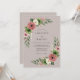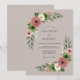 This botanical design features a muted mauve backdrop adorned with lush floral arrangements. Romantic dusty rose roses and creamy white anemones are paired with earthy green succulents and delicate sprigs of eucalyptus. The palette creates a captivating and vintage mood, perfect for an elegant spring or summer event. The composition is balanced with soft watercolor textures and rich botanical details.