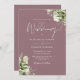 Cet élégant faire-part de mariage feuille de verdure mauve peut être personnalisé avec vos informations en typographie chic avec vos détails de site web mariage et votre code QR au verso. Conçu par Thisisnotme©
