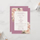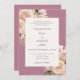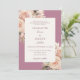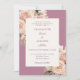 A soft ivory colored frame and a mauve colored background decorated with dusty rose and ivory colored florals. Personalize and add your names and the details. Mauve colored text.