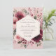 Embrace a romantic aesthetic with this stunning artistic floral design. A delicate wash of soft blush pink provides the backdrop for a lush arrangement of watercolor blooms. Deep mauve and burgundy dahlias are complemented by gentle pink roses and verdant foliage, creating a dreamy and elegant atmosphere for your special day.