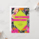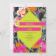 Forme géométrique à 6 côtés jaune néon sur orange rose et pêche floral moderne avec design marbrée foncé. Les noms sont jaune néon sur les barres roses chaudes.