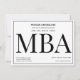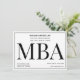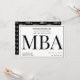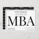 Une invitation à la fête de remise de diplômes MBA en noir et blanc. Cette invitation a également un motif du mot MBA au dos.
