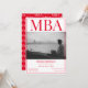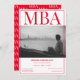 Une invitation à la remise de diplômes MBA avec un modèle photo horizontal avec un jeu de couleurs blanc et rouge. Cette invitation a également un motif du mot MBA au dos. Il vous suffit d'échanger votre photo contre la vôtre, d'ajouter vos informations, d'ajouter cette invitation à votre panier, puis de rassembler vos proches pour célébrer votre succès.