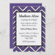 Célébrez le déménagement de votre enfant à l'université avec cette invitation de motif moyen violet, noir et blanc chevron.