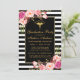 Aquarelle rose Blush or Floral Médicale Graduation Party Invitation Carte avec bandes noir et blanc