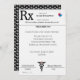 Invitation Médicale à l'obtention d'un diplôme d'études supérieures sur les plaquettes d'ordonnance pour les médecins, les infirmières ou tout diplômé en médecine. Ajoutez les détails de votre fête. Design a un RX pad, caduceus et pilules colorées.