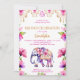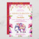 Invitation Mehndi mariage indien éléphant fleurs d'or rose