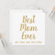 Best Mom Ever texte personnalisé de script personnalisé personnalisé. Texte en faux or entièrement personnalisable, arrière - plan blanc. Grand cadeau pour la Fête des Mères vous pouvez customiser le texte du bas avec les noms des membres de votre famille, enfants, enfants, etc