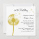 Un dandelion doux et délicat décore cette invitation à la fête d'anniversaire. Il peut facilement être customisé pour n'importe quel âge.