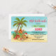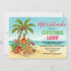 Célébrez les fêtes à la mode de l'île avec cette élégante invitation Mele Kalikimaka représentant une scène de Noël hawaïenne à l'aquarelle. Un palmier décoré scintille de lumières au-dessus d'un tapis de plage tressé recouvert de cadeaux à motifs tropicaux, d'une ananas mûr attaché avec un ruban rouge et d'un ukulélé orné d'un lei coloré. Un chapeau de Père Noël festif et un cocktail à la noix de coco ajoutent une chaleur joyeuse à côté des vagues turquoise et des fleurs d'hibiscus. Parfait pour les fêtes de Noël tropicales, les rassemblements sur le thème du luau ou les célébrations de vacances côtières qui allient l'esprit d'aloha à la joie festive.