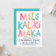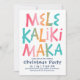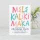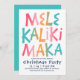 L'invitation de Noël à thème hawaïen présente la typographie "Mele Kalikimaka" aux couleurs tropicales avec les détails de votre événement en bleu marine. Parfait pour les fêtes tropicales, de plage, côtières et d'île. Art par KL Stock