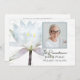 Les invités Invitations se souviennent de votre être cher un an après leur passage avec la paisible invitation à l'anniversaire de la mort de la Lily d'eau blanche. Cette jolie fête fleurie personnalisée de l'invitation hommage mémorial présente un gros plan numériquement aquarelle peinte photo florale d'une fleur de lys d'eau blanche avec des reflets bleu clair sur un arrière - plan blanc. Personnalisez-le avec le nom, la date de naissance et de décès, la photo du défunt et les détails de votre événement. Disponible sous forme d'invitation imprimée à l'envoi et/ou en téléchargement numérique pour un partage numériquement en ligne facile.