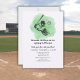 Step up to the plate and celebrate in style with this baseball-themed 50th birthday invitation. The design features a sketch-style baseball player in a hitting position, aiming for a ball with the number 50, set against a soft misty green blur on an off-white background. The playful text reads “is playing his 50th season” and “Grab your glove, it’s game time!” — a fun twist for sports lovers. The back continues the same artistic baseball graphic for a cohesive look. All text can be customized to suit your event.