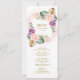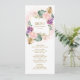 Cette carte à la carte élégante va sûrement rafraîchir votre jour de mariage. Le design présente une belle aquarelle luxuriante végétation tropicale fleurie en rose vif, violet et or. Utilisez les champs de texte pour personnaliser le menu avec votre propre libellé et détails. La couleur arrière - plan de la carte est définie sur blanc, mais n'hésitez pas à choisir une nouvelle couleur de remplissage afin de l'adapter à votre thème mariage. Si vous souhaitez modifier le style de police, la couleur ou le placement du texte, cliquez simplement sur le bouton "Customiser plus".