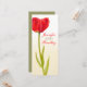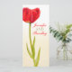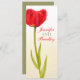 Menu de dîner de réception de mariage aux tulipes peintes en rouge vif simple et double face. Idéal pour vos tables de mariage avec des tulipes rouges ou des fleurs printanières. Conception et peinture à l'aquarelle d'art fin de tulipe par Sarah Trett.