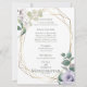 MENU DE MARIAGE | Fleurs de lavande aquarelle et fleurs de crème à la vanille - un cadre géométrique doré à facettes de style terrarium orné de verdure botanique et de bouquets de fleurs. Le verso est d'une couleur coordonnée complémentaire. Personnalisez le texte, le style de police, la couleur et la taille. Œuvre originale créée pour le BarefootBride™ par © WhimsicalArtwork™ - Cela fait partie d'une suite complète de papeterie de mariage avec papeterie assortie pour mariage, baby shower et autres événements.