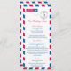 Design Airmail rayé rouge et bleu pour votre menu de mariage de destination. Si vous avez besoin de modifications de conception ou de mise en page pour mieux fonctionner pour vous, envoyez un courriel à paula@labellarue.com AVANT DE CUSTOMISER OU DE PASSER VOTRE COMMANDE afin qu'un nouveau modèle puisse être créé pour vous.