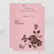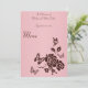 Invitation Menu Fleurs roses et brunes et papillons rougissan