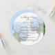 Fleurs d'hydrangée bleue ronde mariage menu modèle. Des fleurs réalistes, bleu clair avec des tiges et des feuilles verts sont l'image arrière - plan pour le texte noir. Titre, "menu Mariage" en haut est script et une liste des aliments servis est listé ci-dessous. L'exemple de texte utilise des majuscules imprimées pour des sections, comme "entrée" et "dessert", et sont faciles à changer pour vos besoins. Ajoutez ou supprimez des espaces pour adapter votre texte. Cette carte est également fournie sous forme de menu carré, ou changer la taille.