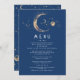 Cartes de menu bleu marine et or mariage étoilé et croissant de lune
