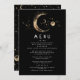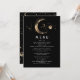 Cartes de menu mariage noir et or noir de la lune étoilée et croissant de lune