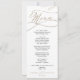 Cette carte de menu mariage romantique aux noms dorés et noirs est parfaite pour un mariage simple. Le design classique moderne comprend des tourbillons fantaisistes et des fleurs fantaisistes avec une superbe élégante typographie de l'or en faux champagne. Ce menu peut être utilisé pour une réception de mariage, un dîner de répétition ou tout événement. Remarque : Ce design ne comporte pas de véritable feuille d'or. C'est un graphisme de haute qualité fait pour ressembler à du papier doré.