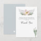 Elégante aquarelle botanique baby shower neutre genre encadre vos détails avec une bordure supérieure de feuilles pastel, ailes Angel et flores en pâle, nuances de gris, pêche et verts sur un pur arrière - plan blanc dans un format carré unique. Le type est défini dans une élégante police traditionnelle sans serif et script de calligraphie. Cette carte de remerciements comprend une Écriture religieuse que vous pouvez éditer pour inclure un verset biblique qui répond à vos besoins. La carte de note parfaite pour le thème du jardin de sexe révèle les baby showers. Pour voir d'autres conceptions comme cette visite VG Invitations à www.zazzle.com/vginvites
