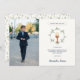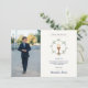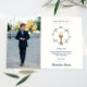 Partagez votre gratitude avec cette carte de première communion raffinée. La photo de votre fils apparaît sur la gauche, tandis que le côté droit présente une délicate couronne florale avec du pain et des icônes de glace. Le motif de feuille et de branche sur le dos complète cette conservation modifiable.
