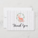 Un carte de remerciements mariage à aquarelle numérique. Une silhouette de rennes orange pastel avec un cercle de feuilles d'herbes et de champignons et de fougères forestières à ses pieds. Message sur le dos avec un motif de bouleaux. Personnalisez avec votre propre message et vos propres noms.