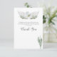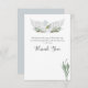 Elégante aquarelle botanique baby shower ou baptême carte de remerciements vos détails avec une bordure supérieure de feuilles pastel, ailes Angel et flores en pâle, tons de gris, plue et verts sur un pur arrière - plan blanc dans un format carré unique. Le type est défini dans une élégante police traditionnelle sans serif et script de calligraphie. Cette carte de remerciements comprend une Écriture religieuse que vous pouvez éditer pour inclure un verset biblique qui répond à vos besoins. La carte de note idéale pour les baby showers de cerub, baptêmes ou fêtes de premier anniversaire. Pour voir d'autres conceptions comme cette visite VG Invitations à www.zazzle.com/vginvites