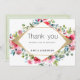 Invitation Merci floral rouge menthe rose géométrique