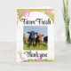 Partagez votre gratitude avec le charme rustique en utilisant cette carte pliée Merci frais de ferme. Doté d'un design d'inspiration campagnarde, il est parfait pour les propriétaires de maisons, les fermiers de jardins, les propriétaires de petites entreprises et tous ceux qui veulent envoyer l'appréciation avec chaleur et authenticité. La couverture frontale met en valeur les éléments frais de la ferme dans un style rustique propre, l'intérieur gauche permet l'espace pour une photo ou une illustration significative, et l'intérieur droit donne de la place pour votre message de remerciement personnalisé. Avec des arrière - plans personnalisables et des motifs naturels, cette carte est idéale pour les vendeurs de marchés agricoles, les propriétaires de petites entreprises, ou comme un boîtier cadeau réfléchi.