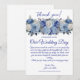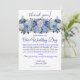 Invitation Merci Mariage à fleurs bleu aquarelle