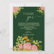 Invitation Merci Mariage vert foncé floral