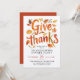 Célébrez la saison de gratitude avec cette invitation à dîner Thanksgiving sur le thème de l'automne, parfaite pour rassembler amis et famille autour de la table. Le design avant présente un script artistique de pinceau d'aquarelle aux riches teintes d'automne, accentué par les feuilles d'automne et un citrouille festif. Une simple typographie noire met en évidence les détails de l'événement, créant un équilibre propre et élégant. L'envers brille d'un fond de terre cuite orange brûlé, ajoutant un charme saisonnier. Personnalisez facilement le texte pour le rendre unique. Cette élégante invitation Thanksgiving donne le ton parfait pour un dîner festif et cosy où les proches se réunissent pour partager des souvenirs.