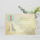 Ce design enchanteur présente une mère et une petite girafe fascinées par un ballon sur un arrière - plan motif coloré avec des détails faire-part en vert olive. L'arrière dispose également d'un arrière - plan motif qui complète le design. Un choix d'autres couleurs arrière - plans tout aussi délicieuses est également disponible.