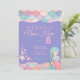 Invitation Mermaid Pastel rose violet Turquoise fille's Birth