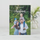 Une simple carte de Noël calligraphiée chic, facile à personnaliser avec votre photo, le texte blanc calligraphié est parfait pour une photo verticale sombre.
