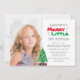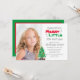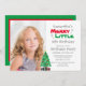 Le thème de Noël des enfants joyeuses petites invitations d'anniversaire. L'Invitation est décoré sur le thème des vacances rouges et vertes avec des flocons de neige gris, un sapin de Noël et des cadeaux. Photo modèle via Pixabay sous licence CC0 et doit être remplacée par votre propre photo